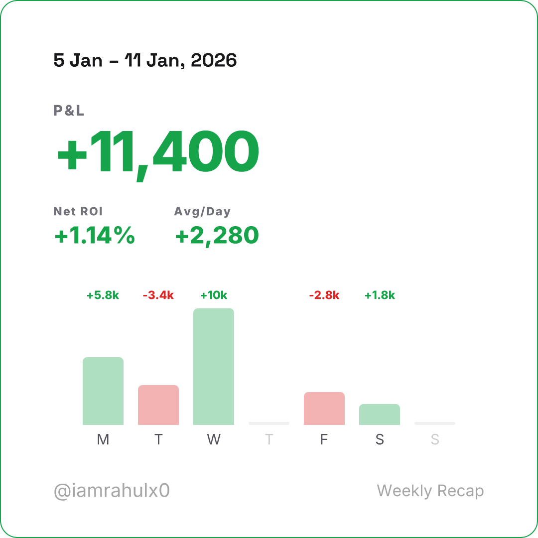 Generate beautiful P&L cards for X and Instagram — daily, weekly, or monthly.